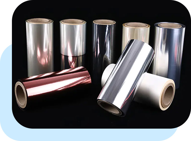 8 Omfattende produkterForskellige metaliserede film (VMPET/VMCPP/VMBOPP), Coating Film (PVDC/Acryl/PVA), Alox Caoted Film (Alox Pet til laminering/udskrivning), kontinuerlig innovation af nye og avancerede produkter. .